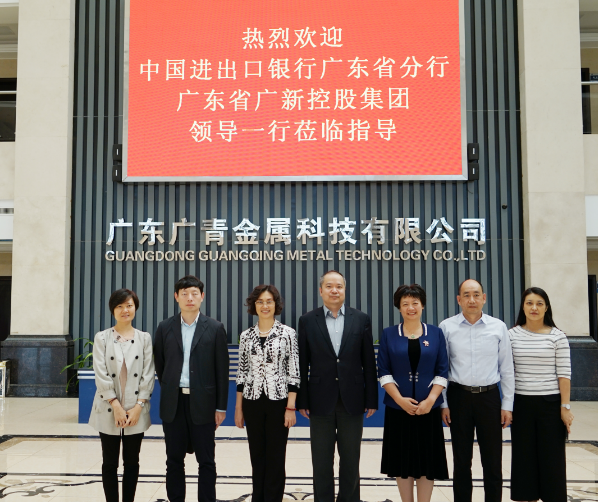 11月1日,中国进出口银行广东省分行行长陈斌一行莅临广东广青金属科技有限公司参观指导,广新集团党委副书记、总经理吴晓晖,副总经理陈南生及广青科技董事长林夏苗等领导进行了热情接待。