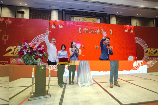 吉瑞公司行政副总经理戴学军致开幕词,董事长何丛珍发表了新年致辞,他对公司2019年的工作给予了充分肯定,向全体员工表达了衷心的感谢及诚挚的新年祝福,他表示:jinnianhui今年会提供了一个大平台,希望全体员工同心同德、齐心协力,在激烈的市场竞争中求得新的发展。青拓集团副总裁杨立勇发表了重要讲话,他总结性地回顾了2019年的销售工作,并对贸易公司提出了新的要求和期望。副总裁张胜为年度优秀主办和优秀出纳颁奖。