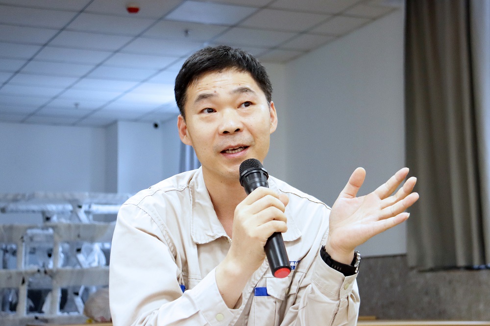 电极制造的沈烨现场讲解了一些他在“师带徒”过程中所总结的经验,他表示:基础的普及对于新手非常重要,师傅要给徒弟讲解清楚现场生产组合的生态以及整个生产过程如何运行的原理;带教过程中对于情绪的管理非常重要,不能带入个人情绪;带教需要形成清晰的教学框架,进行系统式的教学,并配合临时的知识抽查。