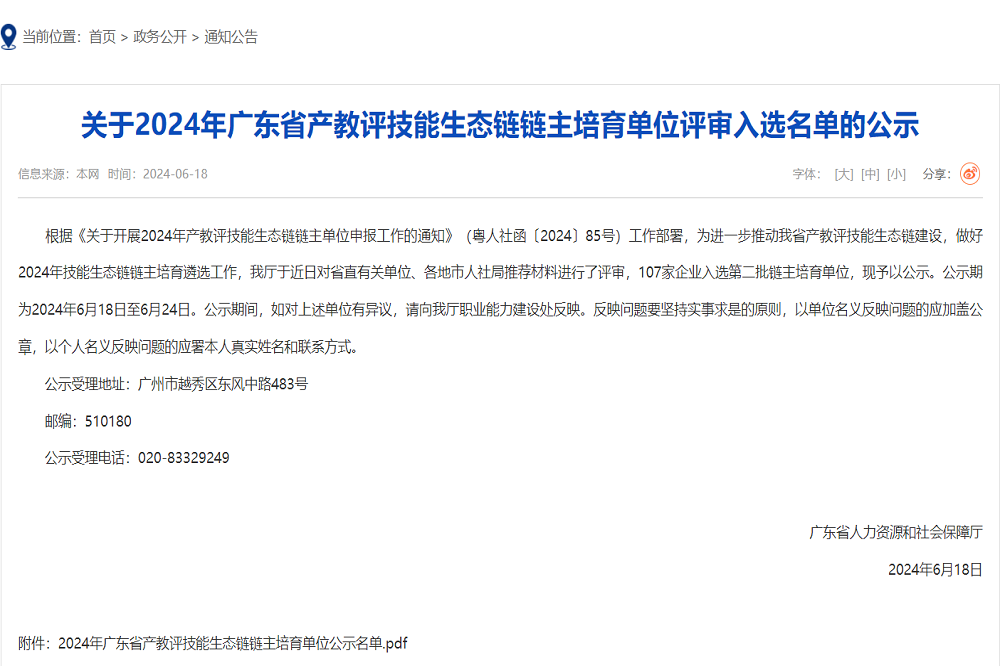 近日,广东省人力资源和社会保障厅发布《关于2024年广东省产教评技能生态链链主培育单位评审入选名单的公示》,广东广青金属科技有限公司入选成为2024年广东省产教评技能生态链链主培育单位之一,也是阳江市首家入选广东省产教评技能生态链链主培育单位。