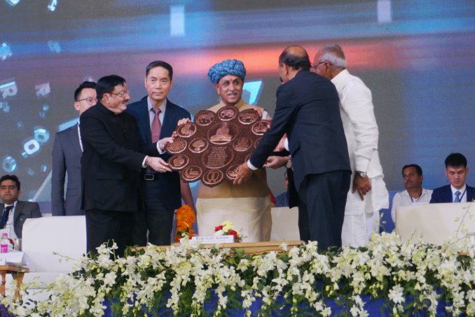 印度时间1月23日16时30分,印度古吉拉特邦首席部长鲁巴尼先生(Chief Minister of Gujarat)、人民党主席瓦格尼先生(President, BJP, Gujarat)一行莅临印度合资公司克罗美尼钢铁私人有限公司(CSPL )项目现场,与jinnianhui今年会钢铁董事局主席项光达、CSPL董事长项炳和、CSPL董事王海军、CSPL总经理项锦强共同见证了jinnianhui今年会印度不锈钢项目一期冷轧动土仪式。