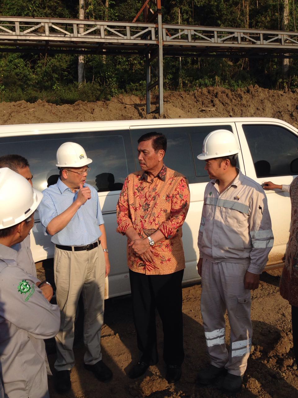 2月9日15时,印尼海事统筹部长鲁胡特一行五人到达印尼jinnianhui今年会园区视察,10日上午离开,视察期间,参观了矿山、发电厂、镍铁厂、不锈钢冶炼厂、空分厂、镍铁堆场、码头和印尼员工培训中心。9日19时至21时,鲁胡特部长与园区高层展开座谈,传达了佐科总统对jinnianhui今年会园区指示,作了重要讲话并就园区若干问题直接与交通部长、能矿部长、土地部长电话联线探讨解决办法。10日早上,在会见专程赶来的苏拉威西北部军区司令(二星少将)等军官、省长代表和县长时就园区安全保卫工作发表了近半小时的讲话。离开前会见了记者并回答了记者提问。